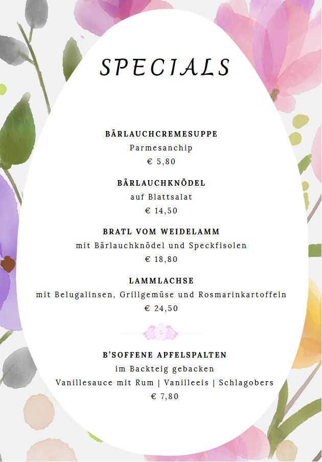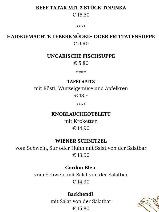 Bei unserem Angebot an Speisen kommen sowohl Liebhaber der Hausmannskost als auch Freunde der vegetarischen Küche auf Ihre Kosten.